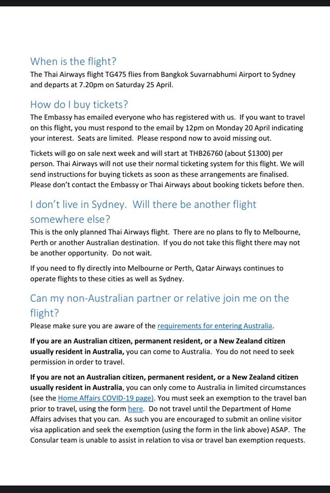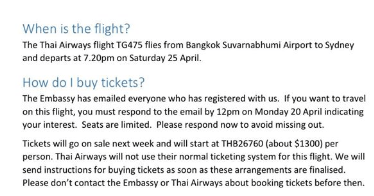 Q&A: Thai Airways flight from Bangkok to Sydney on 25 April