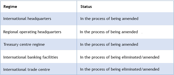 Where a regime is “in the process of being eliminated,” as well as where a regime is “in the process of being amended,” this reflects that Thailand has communicated to the Forum on Harmful Tax Practices (FHTP) its government's commitment to abolish or amend the regime in light of the discussions by the FHTP about the features of the regime that are of concern, and that the FHTP could reconsider the description of these regimes if insufficient progress was being made.Renewed focus on transfer pricingThe BEPS initiatives were born in 2013 and will result in the most significant re-write of international tax rules in a century. A guiding principle of the initiatives is that profits should be taxed where the real economic activities generating the profits are performed and where value is created.